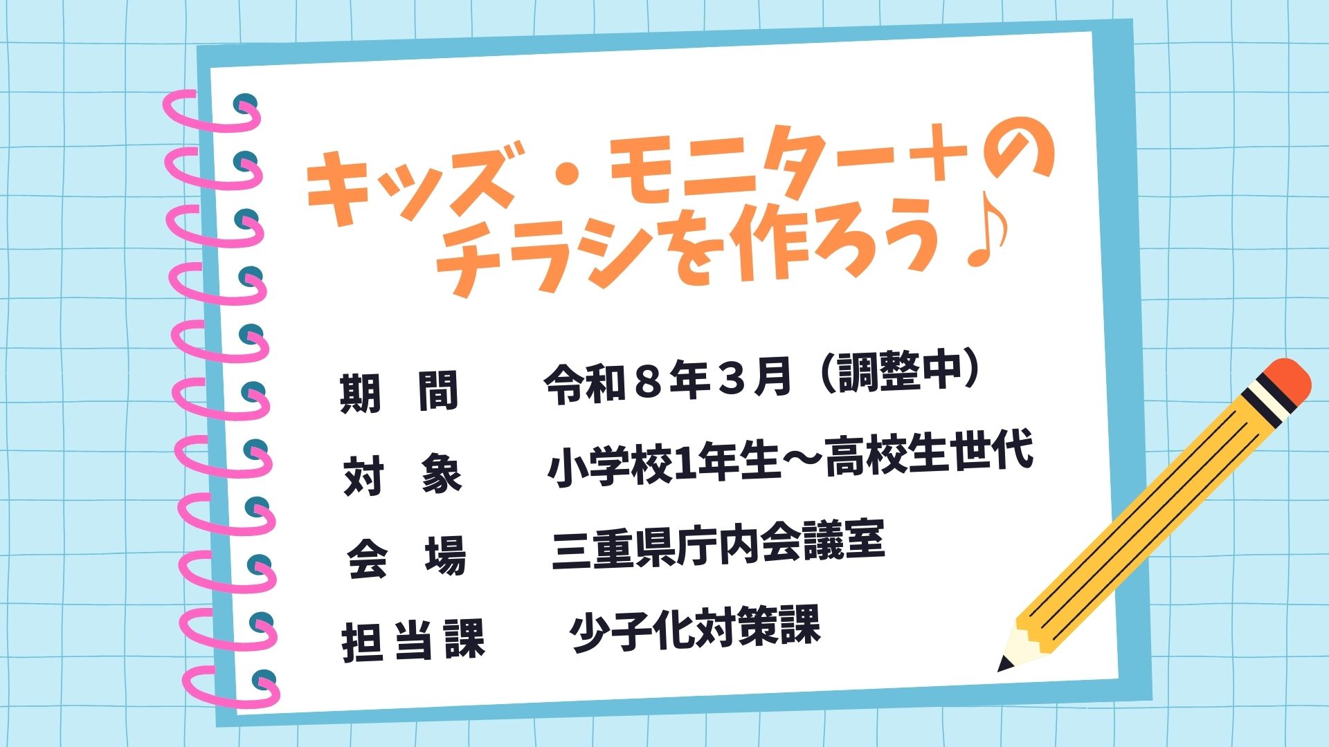 三重県では、平成21年(2009年)度から、三重県のさまざまな取組について、子どもたちの意見を聞くためのインターネットを使った電子アンケート「キッズ・モニター」を行っています。