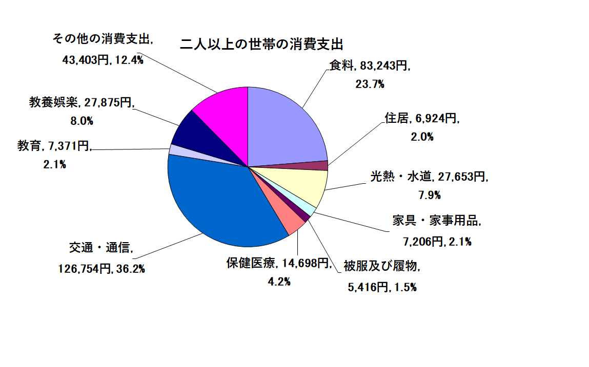 消費支出は、1世帯当たり 350,543円(前月 326,984円)