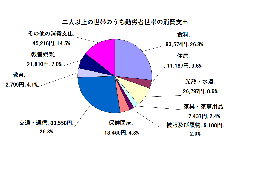 消費支出は、1世帯当たり 312,026円(前月 302,060円)