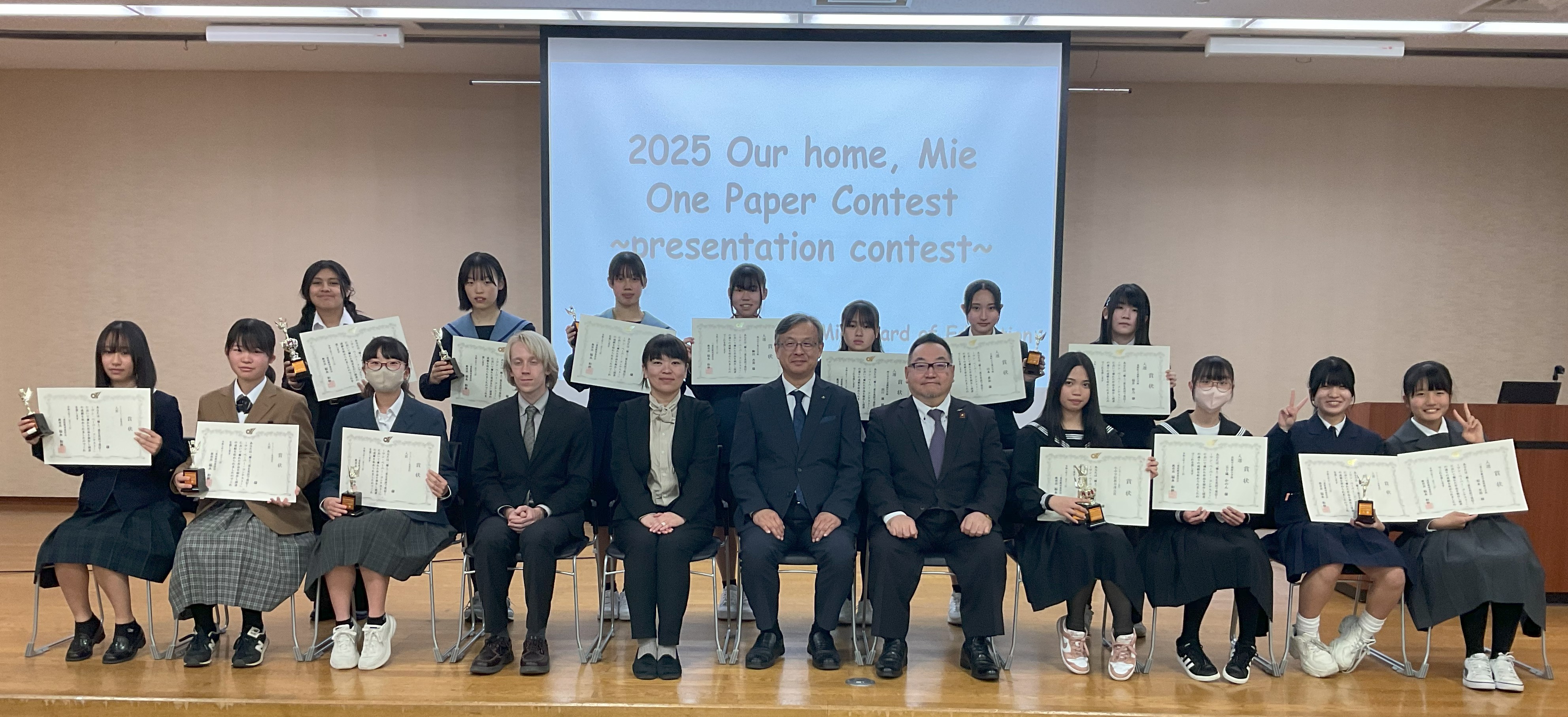 三重県教育委員会では、12月13日(土)「郷土三重を英語で発信!~ワン・ペーパー・コンテスト~」のプレゼンテーション部門及びリーフレット掲載部門の入賞者の表彰式を開催しました。