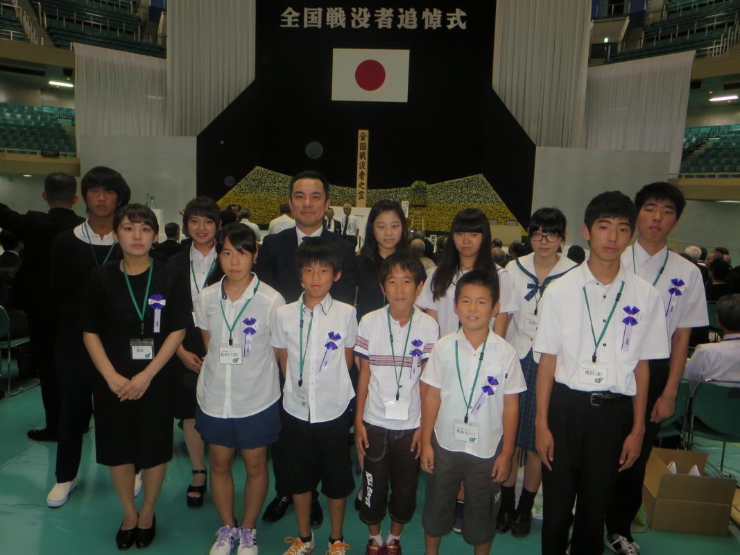 | 今まで小学校や中学校では戦争の歴史について詳しく触れる機会が、修学旅行で広島へ行ったこと程度しかありませんでした。しかし、終戦70年という節目のこの年に戦争の話を遺族会の方からうかがったり、戦没者追悼式に参加するなど貴重な体験をすることができました。現在、私たちは平和があたりまえのように生活をしていますが、この意識を変え、周りの人に少しずつでもこの体験を伝えていこうと思いました。