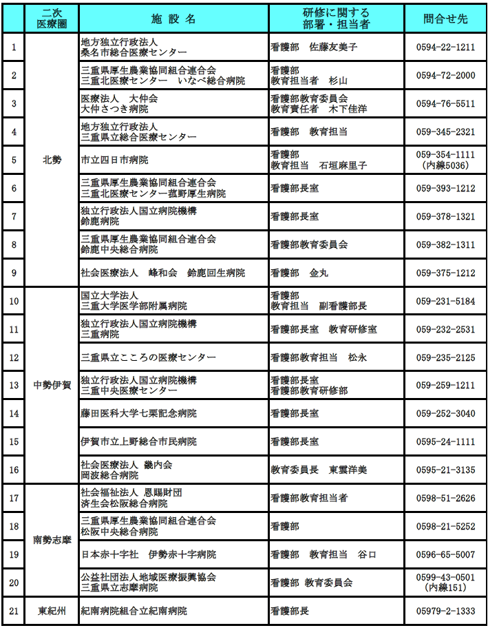 新人看護職員医療機関受入研修事業実施予定施設一覧