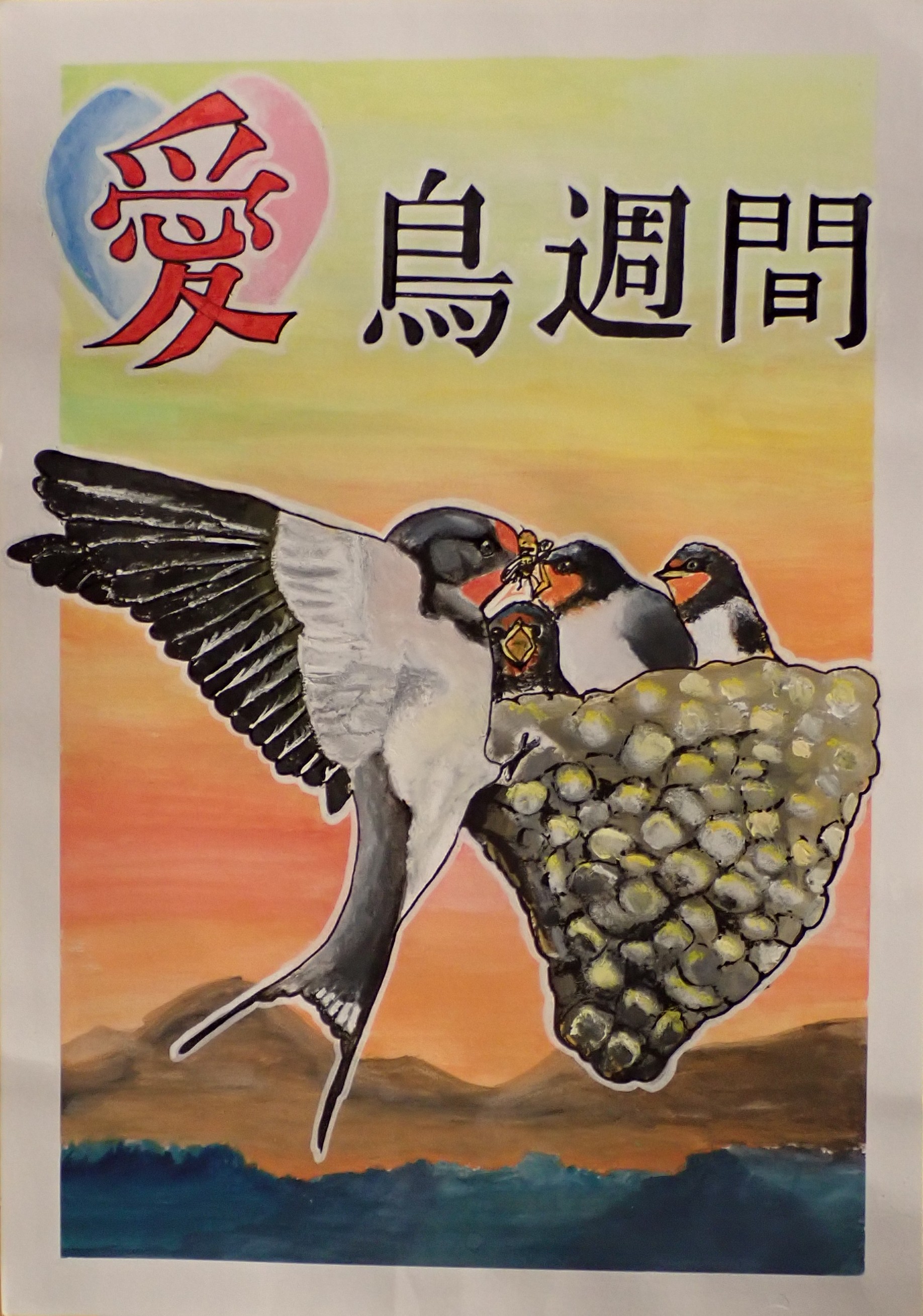 また、愛鳥週間をテーマとした作品のうち、小学生3名、中学生3名、高等学校生3名の計9名の作品について、公益財団法人日本鳥類保護連盟主催の令和8年度愛鳥週間用ポスター原画コンクールに応募しました。
