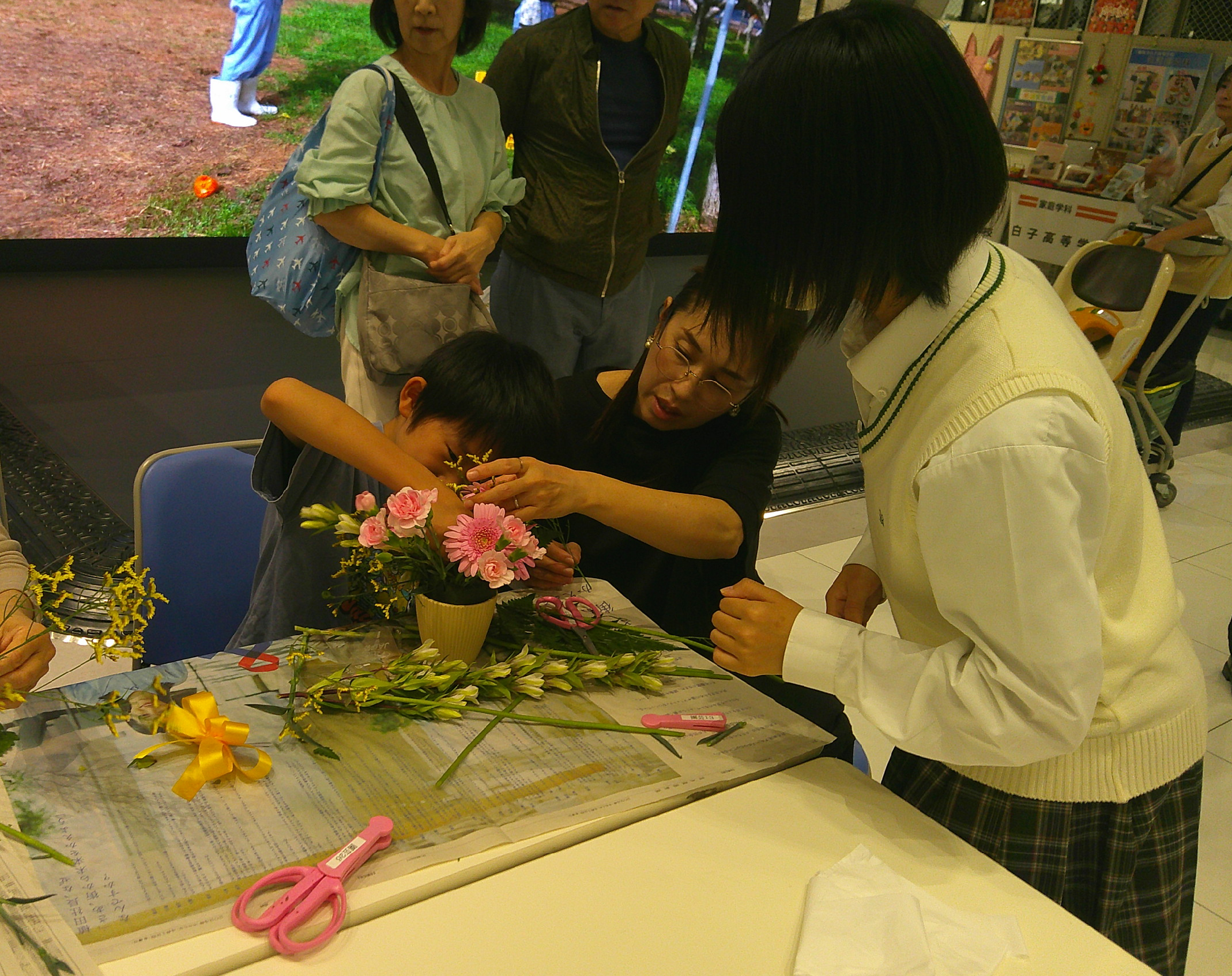 農業学科を設置する県立高等学校では、生徒が地元の自治会や保育園など多様な団体と協力しながら、花壇への花植えやフラワーアレンジメント等の活動を行いました。
