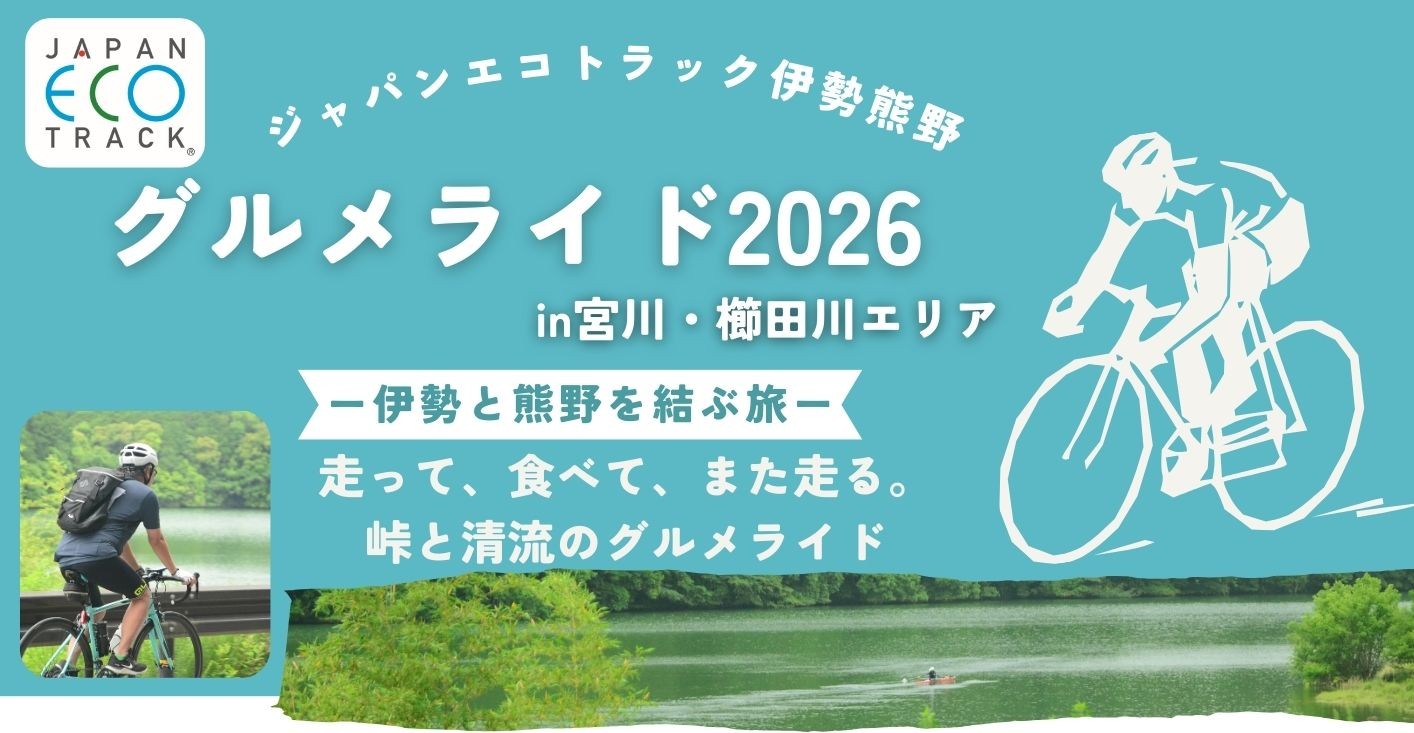 そんな、ジャパンエコトラック「伊勢熊野」の魅力を多くの人に体感していただくため、今回は、宮川・香肌峡ルートを中心に、地元グルメを楽しみながら3市町(多気町、松阪市、大台町)を巡るサイクリングイベントを実施します。