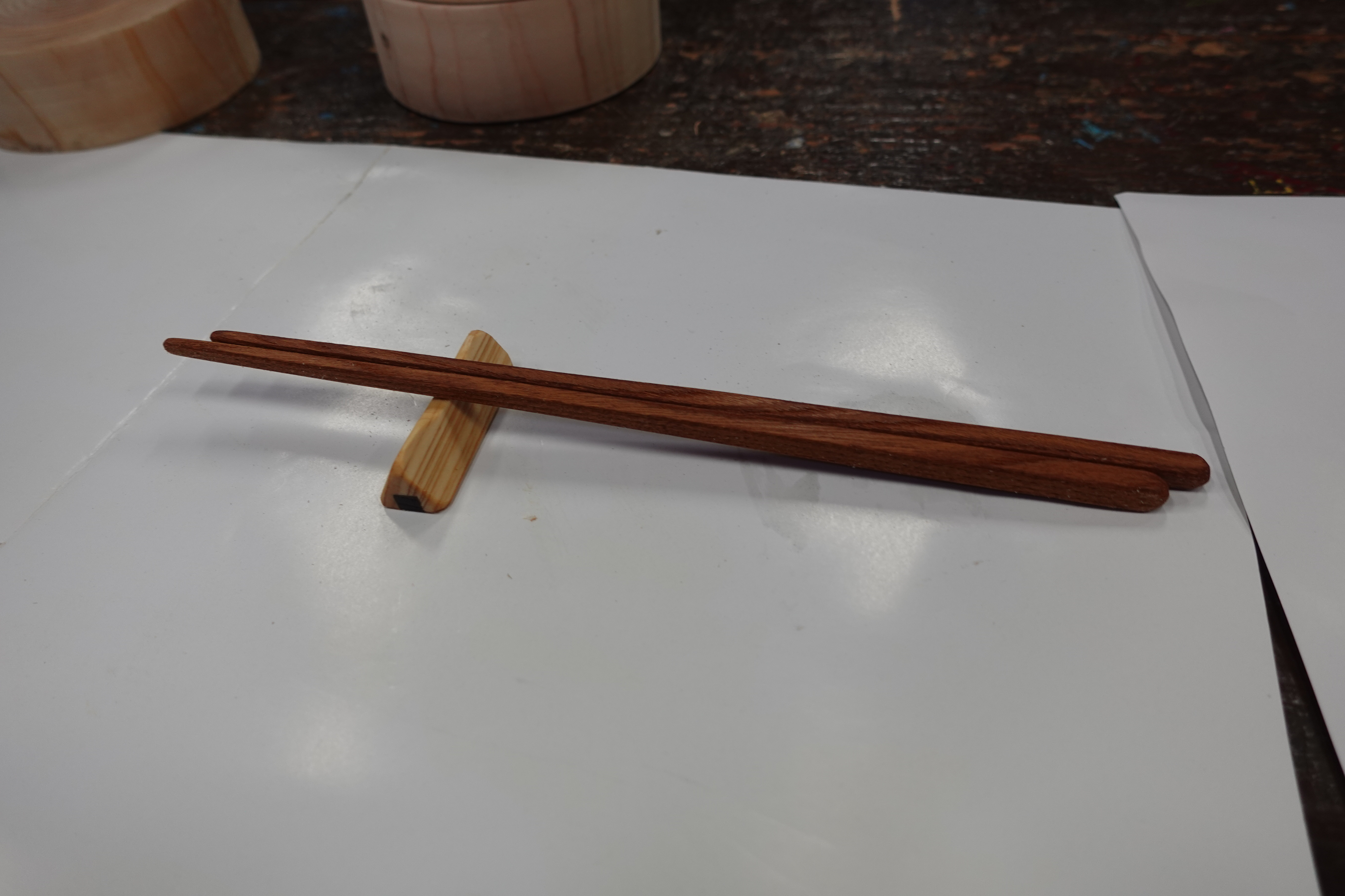 ・自作のお箸で食事をし、どんな体験をしたかたくさん話してくれました。