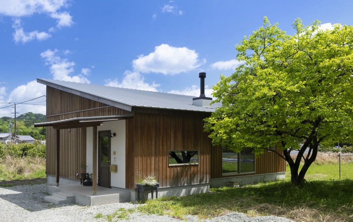 庭に自生する柿の木に寄り添い、ひっそりと佇む平屋の小住宅である。そのスケール感と杉板張りの落ち着いた外観が、建物と外構との一体感を生み出している。内部は白い壁が木の床や天井を引き立て、温もりのある空間を演出している。各所にヌックや書斎、ピアノを置いた土間などの多彩なコーナーが設けられ、木の家具や仕上げと相まって居心地の良さを醸し出している。細部にまで丁寧にデザインされており、設計者のこだわりがうかがえる秀作である。