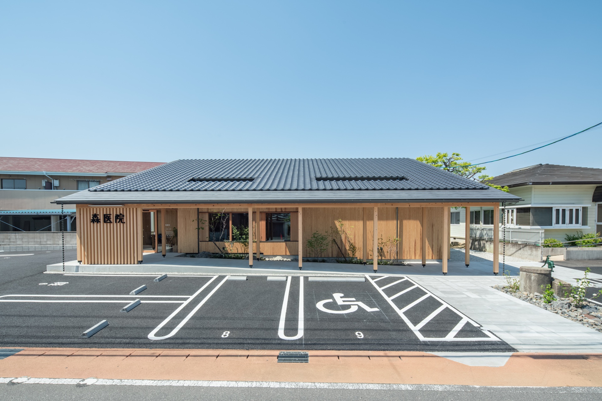 旧街道に面した小規模クリニックである。深い庇が端正なファサードを作り出し、その中に光の差し込む植栽エリアを設けて、地域のコミュニティに開かれた明るいアプローチ空間を実現している。土間はそのまま内部まで連続し、入れ子状に掛けられた木の屋根が街道の続きのような雰囲気と同時に、子どもから高齢者まで様々な患者さんに寄り添う優しさを感じるスケール感を待合空間に作り出している。以上のような地域のクリニックとしてのデザインと併せて、木材利用の工夫として、製材所と連携した木取りで構造材と仕上材の双方に熊野産のスギとヒノキを活かした点も高く評価された。