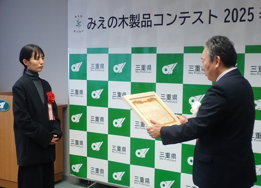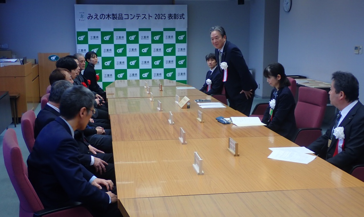 その一環として、日常生活及び事業活動で使用する魅力的な木製品を対象とした「みえの木製品コンテスト」を開催し、令和8年1月30日(金)に三重県庁にて表彰式を開催しました。
