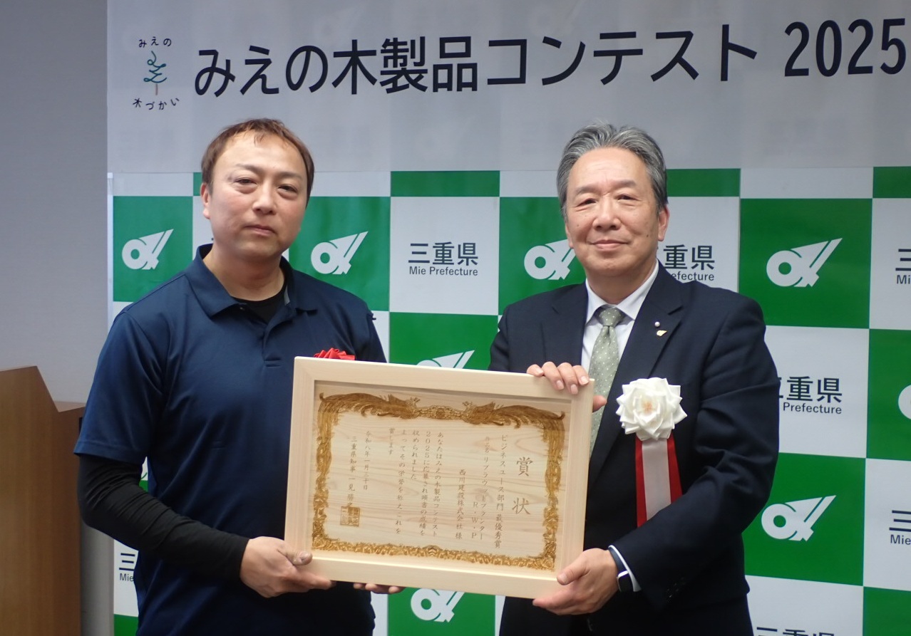 受賞者へは三重県産ヒノキを使用した木製賞状が野呂副知事より授与されました。