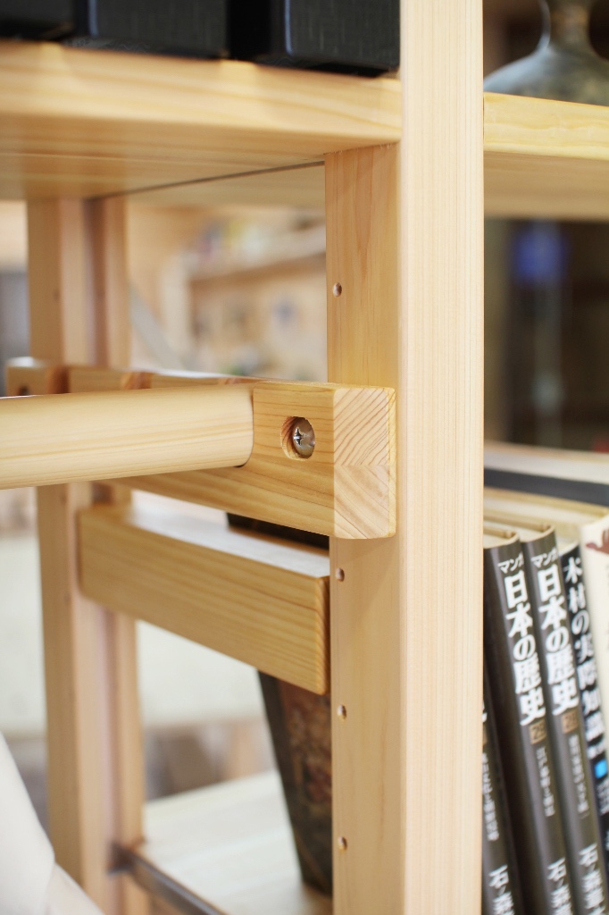 熊野産のヒノキ材を使った木製システム家具「イキクッカヒノキ」を使った学習机ユニットです。ドライバー1本で組み立てができ、組んだ後からでも棚板、デスク、ハンガー掛けは位置を簡単に移動させることができます。シンプルな本棚からデスクそして洋服掛けへ、子供の成長や使い勝手に合わせて自分の好きな形にカスタマイズできます。イキクッカはフィンランド語で「永遠に咲き続ける花」という意味です。