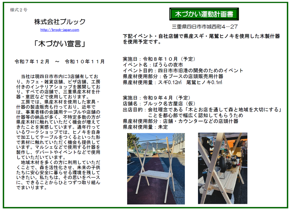 株式会社ブルック「木づかい宣言」(1期~3期)