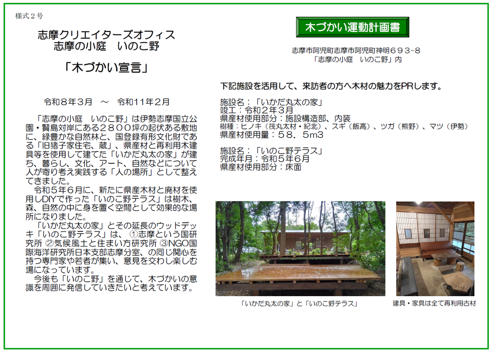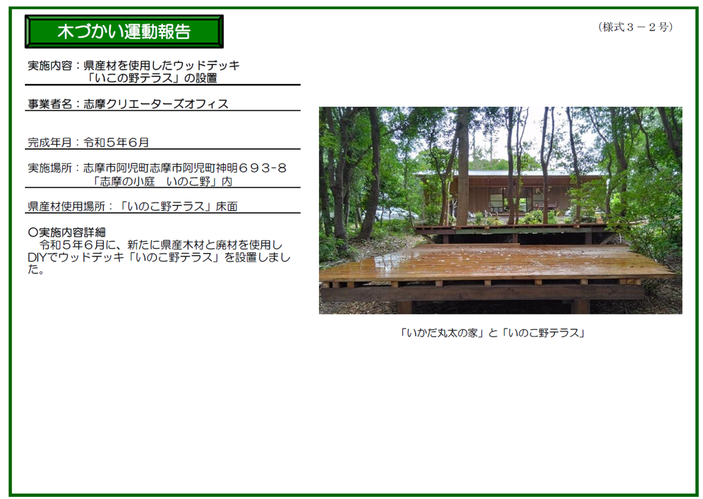 木づかい運動報告書(1期目) ●志摩クリエーターズオフィスの1期目の取組内容はこちら 木づかい運動報告書(2期目)