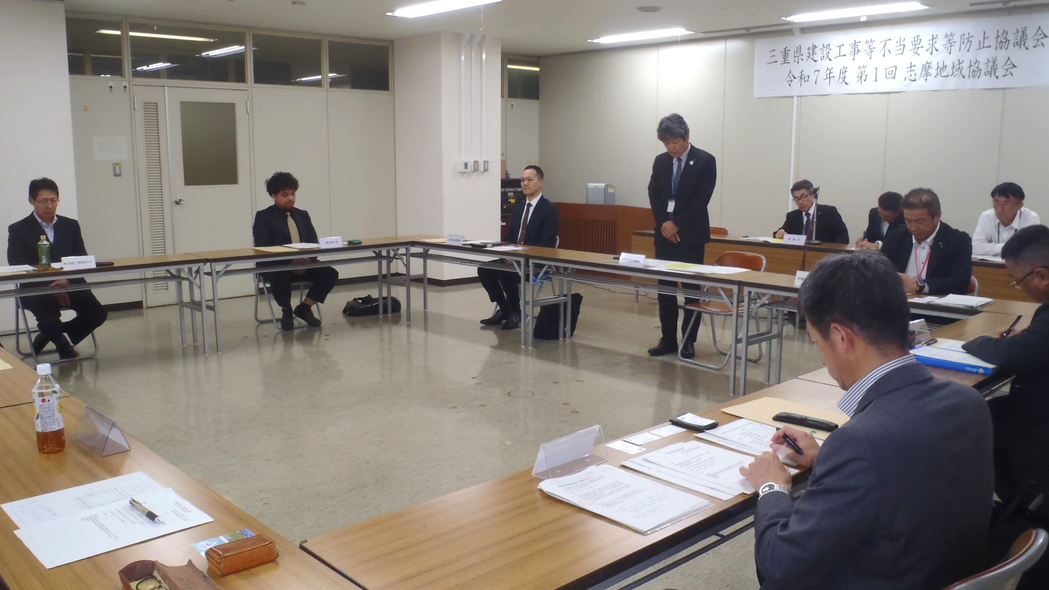 三重県、三重県建設業協会志摩支部、三重県農業土木振興会、三重県測量設計業協会、三重県鳥羽警察署、三重弁護士会、暴力追放三重県民センターで構成する「三重県建設工事等不当要求等防止協議会(令和7年度第1回志摩地域協議会)」を開催しました。