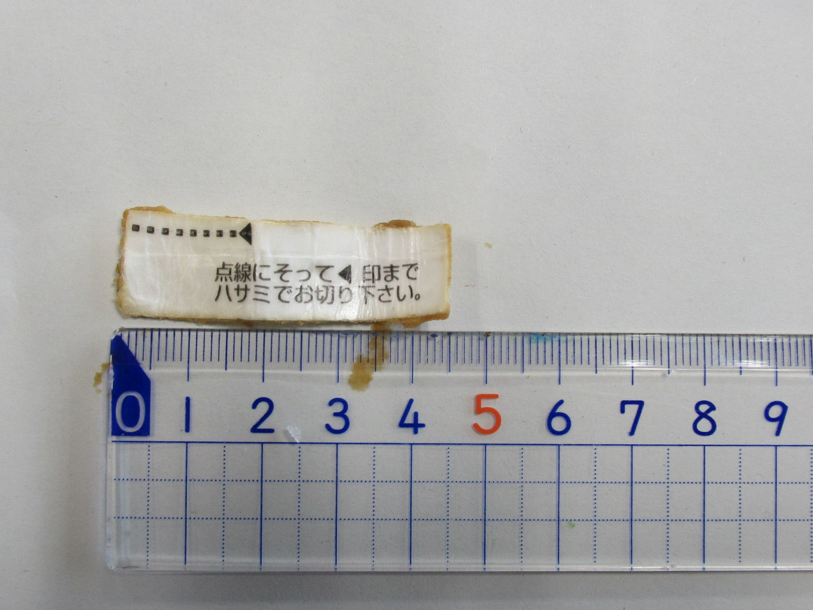 約1cm×4.5cmの文字が印字された紙片が確認されました。教員は直ちに喫食を中止し、
