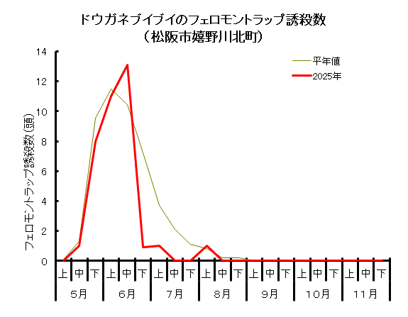 ドウガネブイブイ成虫の発生消長 (調査対象期間:5月1日~11月30日)