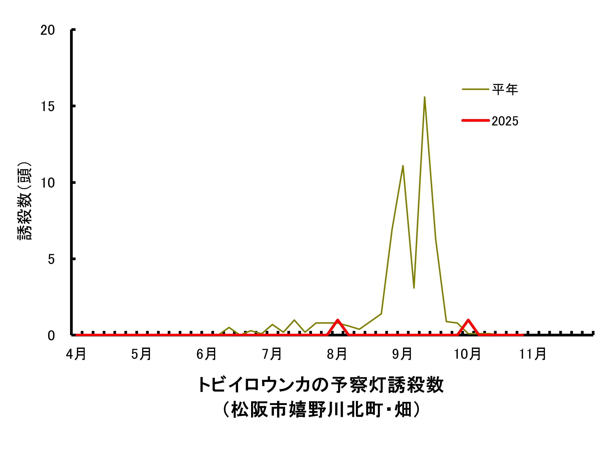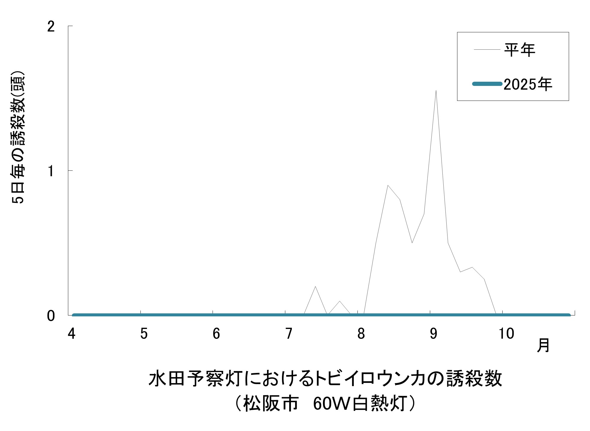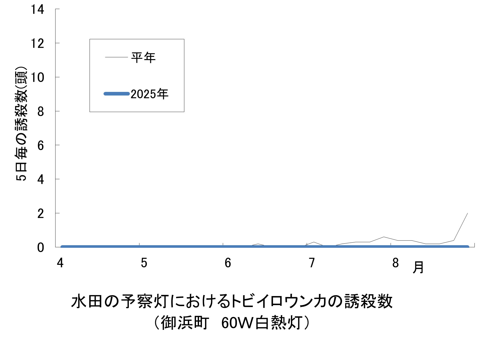 <令和7年の予察灯におけるトビイロウンカの誘殺状況>
