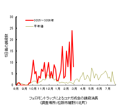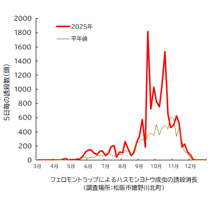 ハスモンヨトウ成虫の発生消長 (調査対象期間:3月1日~12月31日)