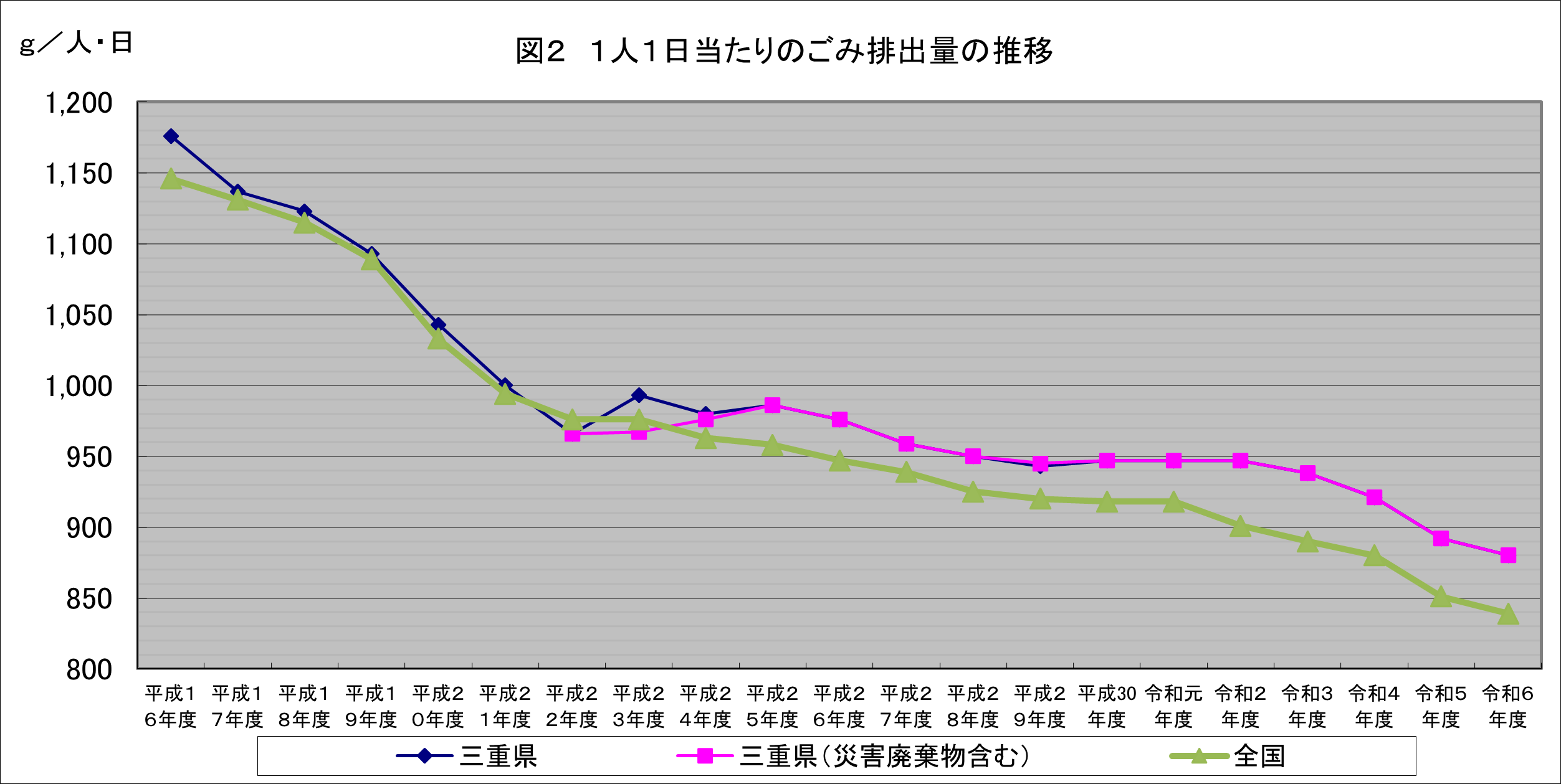 1人1日当たりのごみ排出量は、令和6年度の実績は、880gとなっていて、前年度と比較して1.3%の減少となりました。