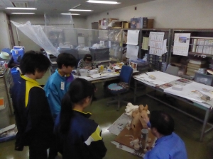 埋蔵文化財センターの仕事について講義 未整理室の見学「あっ…馬形埴輪!?」