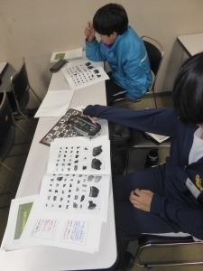 2日目の午前中は前日に続き、坂本古墳群や安養寺跡など明和町内の遺跡について学び、遺跡の発掘調査の内容がわかる発掘調査報告書のみかたについて話しました。最後に2日間の締めくくりとして、明和町「コドノB遺跡」の報告書を使い、専門用語などについての解説を行った後、遺物・遺構についての解説や写真、実測図を頼りに、展示のレイアウトを考える実習を行いました。生徒たちは報告書を読み込みながら、それぞれのコンセプトで遺物を選択し、展示レイアウトを完成させていきました。近日中に生徒が考えたレイアウトをもとにして、コドノB遺跡出土遺物の展示を行う予定です。