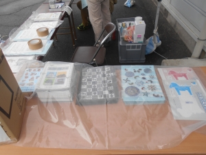 今回初めて実施した、段ボール紙を使った簡単な機織り機を使って、本のしおりのような布を作る体験コーナーです。縦糸と緯糸をうまく組み合わせながら編みあげていくのは根気がいりますが、編み目をしっかりつめたり、色をカラフルにしてみたり、思い思いの布を完成させていました。